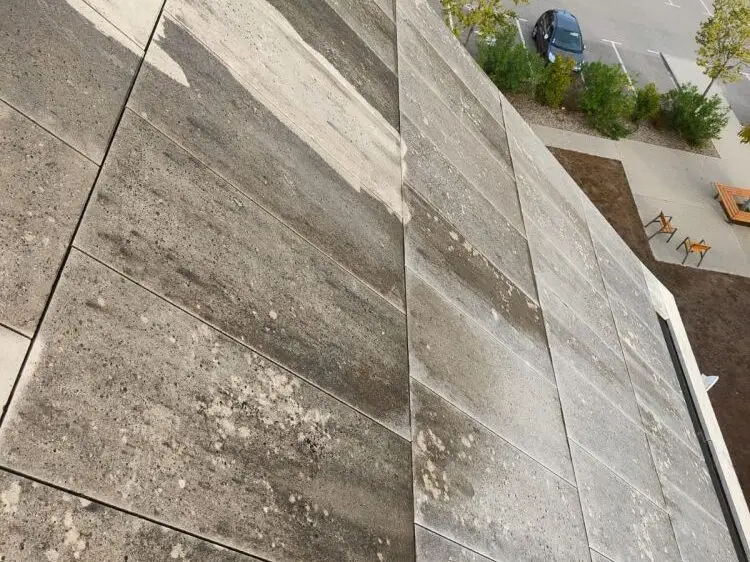 Le nettoyage de la toiture consistait en un lavage à haute pression avec de l’eau chaude (90 °C).