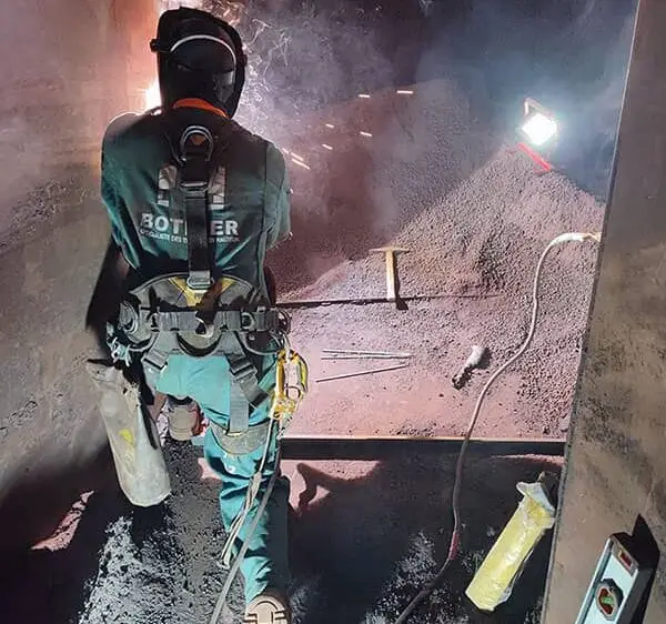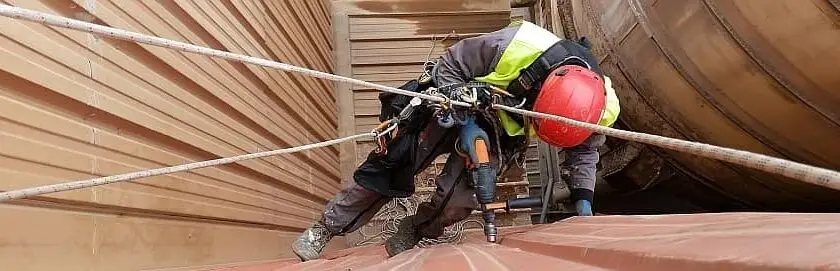 Notre équipe de cordistes est intervenue sur un site industriel à Fos-sur-Mer, près de Marseille. Notre mission : le soudage d’une plaque d’obturation dans une gaine.Consultez notre page pour en savoir plus sur nos travaux en milieu industriel....
