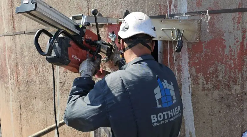Nous sommes intervenus il y a quelques semaines sur un site industriel des Bouches-du-Rhône afin de procéder au carottage de plusieurs trous de différents diamètres. Ce carottage sur la cheminée du site industriel visait à la mise en place de fourreaux inox.