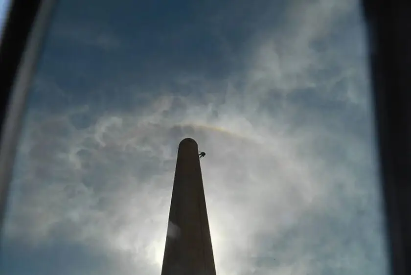 Intervention de nos cordistes sur cheminée de 60 mètres pour la réalisation de curage du génie civile afin de mettre en sécurité de la zone sur le site des Dépôts Pétroliers de Fos sur mer près de Marseille.