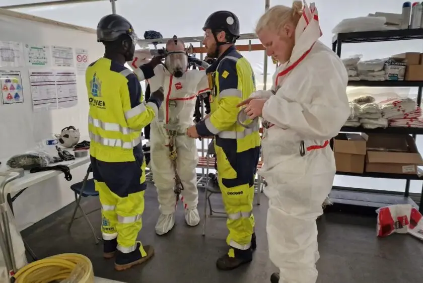 Sur ce chantier, tous nos techniciens étaient équipés individuellement d’un détecteur 4 gaz calibré à jour, d’un masque de fuite et d’un masque ABEK.