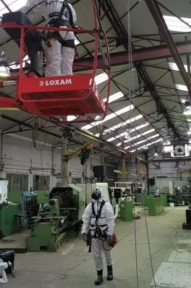 Travaux en condition amiante en SS4 pour le compte d’une société de désamiantage en sous-traitance. Travaux sur corde et nacelle pour la pose de filets sous toiture à Six Fours (83).