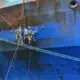 Les techniciens cordistes de Bothier ont eu l’occasion il y a quelque temps d’effectuer un chantier quelque peu exceptionnel dans le port maritime de Fos-sur-mer. Ils avaient pour mission de remettre en peinture le lettrage du nom d’un porte-conteneurs et de sa compagnie.